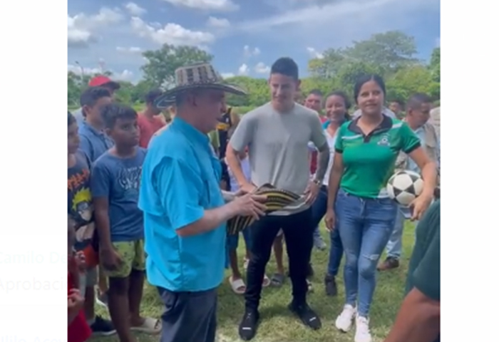 Desde la oficina de prensa de Uribe Vélez mencionaron que James llegó a visitarlo de sorpresa y el expresidente aprovechó para llevarlo a unas canchas de fútbol que tiene para la comunidad para que los niños lo saludaran.