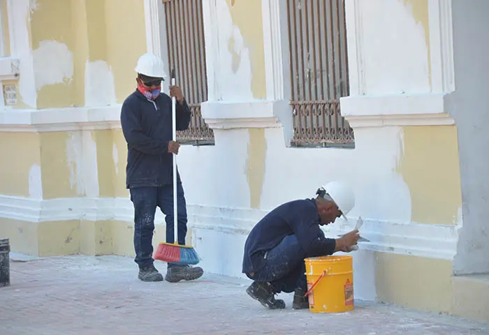 La fachada de la bella edificación arquitectónica ubicada en la calle 14 entre las carreras 2 y 3, en pleno Centro Histórico de Santa Marta, recibe una intervención a cargo de un personal que hace las mejoras, pero además aplica pintura con el propósito de preparar a la ciudad con motivo del cumpleaños 498 en el mes de julio.