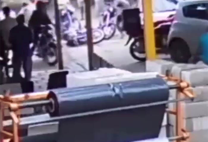 El caso quedó captado en video y se puede apreciar como el hombre y la mujer tras haber retirado una considerable suma de dinero en una entidad bancaria en el centro comercial Buenavista, transitaban en una motocicleta por el andén del barrio en mención con el fin de evitar el embotellamiento de carros que a diario se genera en esta zona.