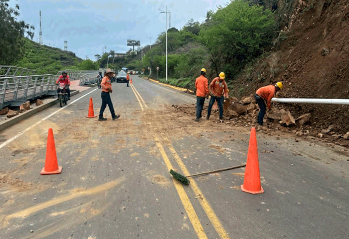 La sinergia interinstitucional permitió una actuación de manera oportuna ante el derrumbe ocurrido el sábado en el cerro que originó un cierre preventivo en la carretera que conecta hacia el balneario turístico de El Rodadero.