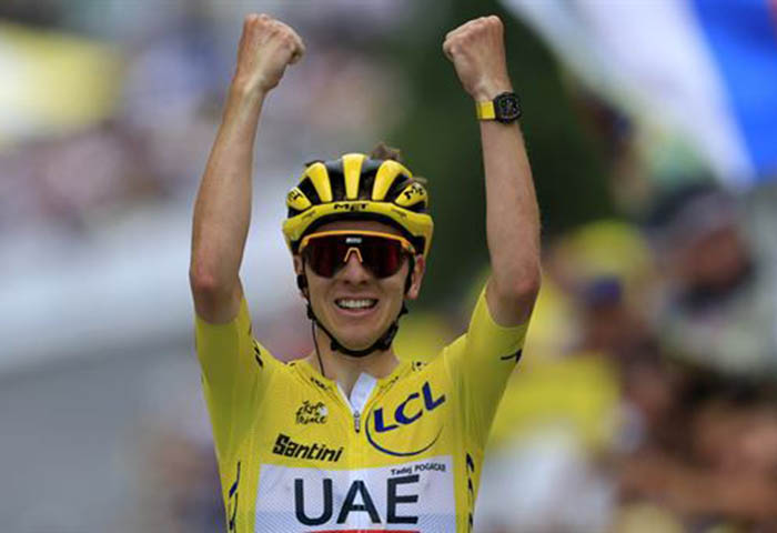 El corredor esloveno dejó atrás a unos metros de meta al último ganador del Tour, Jonas Vingegaard, para aumentar su colchón en la general, casi definitivo con sus más de cinco minutos sobre el danés a falta de la contrarreloj final en Niza el domingo.