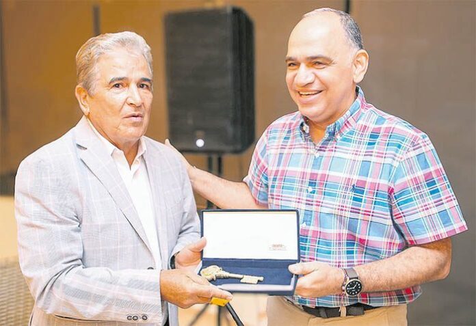 “Las llaves de la ciudad para el director técnico de nuestro Unión Magdalena, Jorge Luis Pinto. El fútbol une voluntades y ahora, más que nunca, Yo Me Pinto de ilusión con el ascenso a la A ¡Profe, Santa Marta y el Unión Magdalena son su casa!”