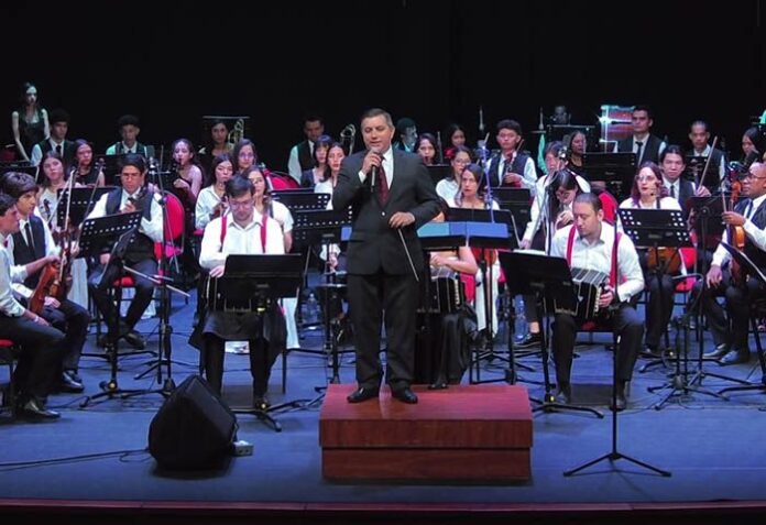 La velada fue protagonizada por una fusión magistral entre la Filarmónica de Cajamag y la Orquesta de Tango de la Red de Músicas de Medellín, las cuales unieron sus talentos para brindar un repertorio de altura que cautivó al público presente.