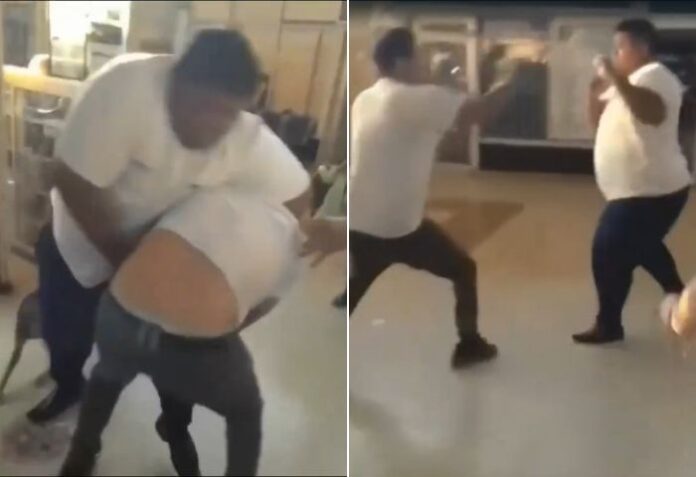 En la grabación se puede apreciar cómo los dos sujetos sin importar la presencia de pasajeros iniciaron una acalorada discusión que trascendió rápidamente a los golpes.