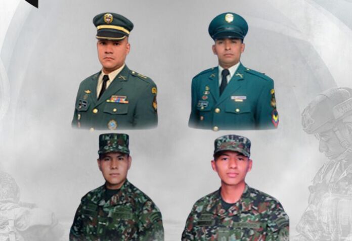 Entre los fallecidos se encuentran el capitán Rafael Moncada Gómez, el sargento segundo Daniel Macías, y el soldado profesional John Mamian Galíndez. Los nombres del cuarto militar fallecido aún no han sido confirmados por las autoridades. Además, otros dos uniformados resultaron heridos y están recibiendo atención médica en un centro hospitalario cercano.