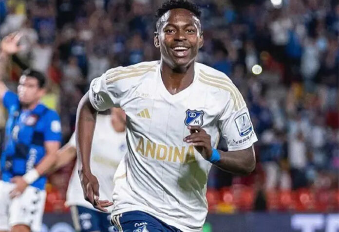 Se trata de Kevin Palacios, quien era en baja en los azules desde el pasado 26 de noviembre, cuando sufrió un desgarro muscular en el clásico bogotano, donde el Embajador se impuso 0-1 a Santa Fe en la segunda fecha de los cuadrangulares finales.