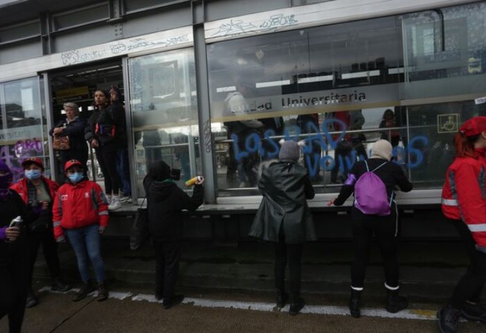 Infortunadamente, un grupo de encapuchadas han vandalizado el inmobiliario público, con la destrucción de algunas ventanas y puertas de buses del sistema de transporte de Transmilenio, entre otros.