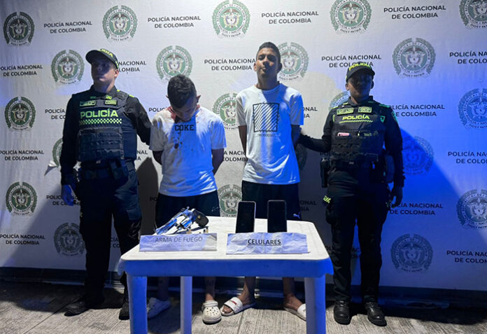 En una oportuna y eficaz reacción, unidades de la Policía Metropolitana de Santa Marta lograron la captura de dos individuos identificados como Antonio Tovar y José Acuña, señalados de haber perpetrado un robo en el sector turístico de El Rodadero, al sur de Santa Marta.