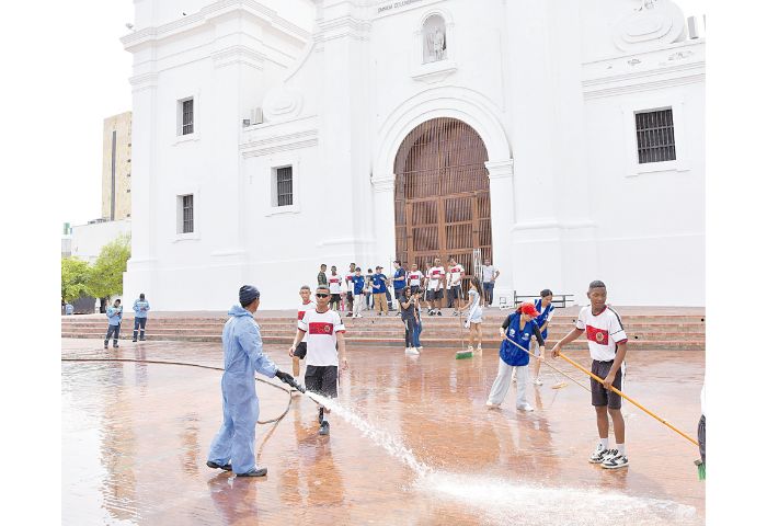 En el marco de la conmemoración de los 500 años de la fundación de Santa Marta, se realizó una jornada especial de limpieza y embellecimiento en los alrededores de la Catedral Basílica.
