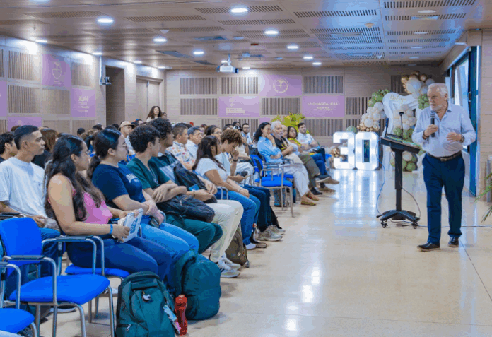 “Estoy muy honrado de estar en esta celebración. Hoy en día tenemos que estar enfocados precisamente en lo que está ocurriendo a nivel mundial y creo que desde Unimagdalena realmente lo están haciendo en la manera correcta, o sea, el enfoque es ese y yo creo que hay que persistir en ello”, sostuvo el biólogo, quien también resaltó la labor conjunta que ha venido desarrollando con la Institución.