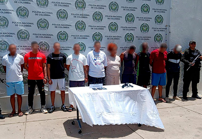 Entre los capturados figuran alias ‘Boyaco’, señalado como presunto jefe financiero; alias ‘Yao’, identificado como supuesto cabecilla militar; alias ‘Marquetalia’, encargado de las finanzas en Riohacha; alias ‘Gordo Way’, vinculado a rentas del narcotráfico; alias ‘El Viejo’, señalado como presunto perfilador de víctimas, y alias ‘Suly’, quien sería la coordinadora logística, además de otros presuntos integrantes identificados como alias ‘Mono Edi’, ‘África’, ‘Punto 40’, ‘Leifa’, ‘Óscar’, ‘Douglas’ y ‘El Gordo’, quienes, según las investigaciones, harían parte de la red encargada del cobro sistemático de extorsiones en la zona.