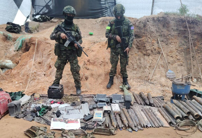 «Este lugar era empleado por el grupo armado para coordinar ataques con dron a las tropas que se encontraban en el lugar», explicó el coronel Camilo Ernesto Contreras Suárez, comandante de la Fuerza de Despliegue Contra Amenazas Transnacionales.