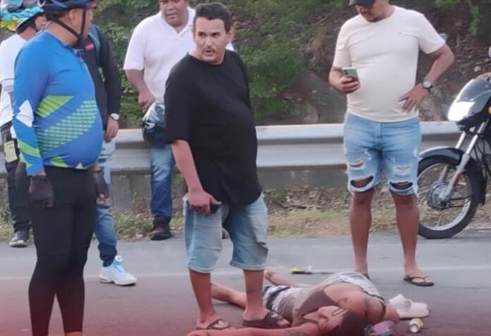 La mujer, cuya identidad no ha sido establecida, resultó gravemente herida tras caer de la motocicleta en la que se movilizaba como parrillera en la Troncal del Caribe, a la altura de Pozos Colorados.