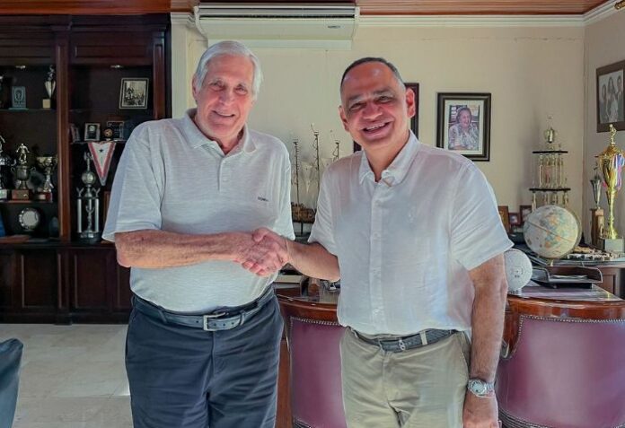 El alcalde Carlos Pinedo Cuello sostuvo una reunión con el mayor accionista del Club Unión Magdalena, Eduardo Dávila Armenta, para ratificar acciones de trabajo conjunto entre la administración distrital y el equipo samario, en beneficio de la optimización del estadio Sierra Nevada de Santa Marta.