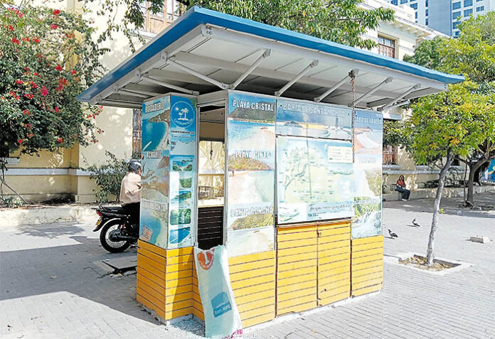 Son siete años de abandono los que lleva el Punto de Información Turística, habilitado por el Ministerio de Comercio, Industria y Turismo y el Fondo Nacional de Turismo, Fontur, para información a los visitantes. FOTOS MONTINER ALVIS.