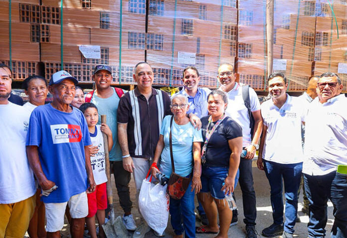 Pinedo Cuello hizo entrega oficial de siete mil bloques, 250 bolsas de cemento, 250 tejas de Eternit y 70 metros de arena, que le permitirán a 25 familias afectadas por el frente frío registrado en el mes de febrero, reconstruir sus viviendas y mitigar el impacto de este fenómeno natural.