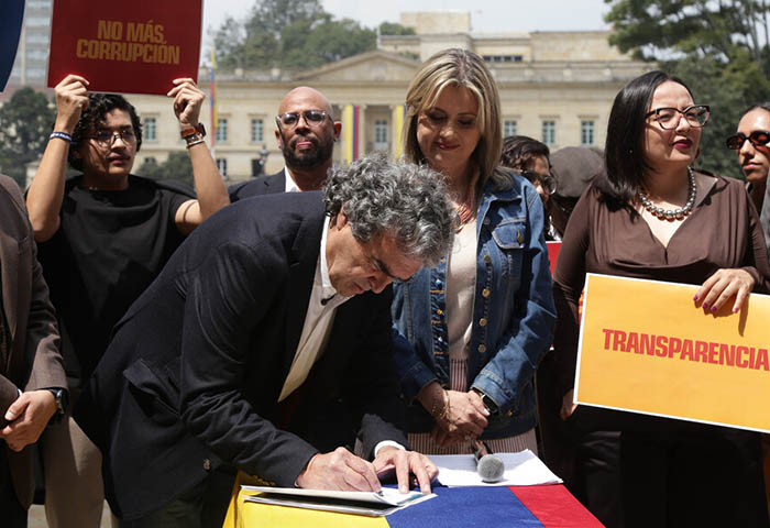 “Haré que mi gobierno sea reconocido por defender el dinero de todas y todos los colombianos con información abierta, sanción real, plata recuperada y reparación a las víctimas”, destacó el aspirante en un acto, que precisamente realizó en el Patio Núñez del Capitolio Nacional, que tiene de fondo a la Casa de Nariño.