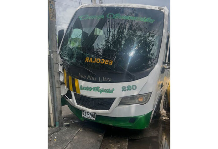 Dos estudiantes con discapacidad resultaron lesionados luego de que el bus de servicio especial en el que se movilizaban, presuntamente, sufriera una falla mecánica y terminara chocando con un poste de energía en la avenida del Río, en Santa Marta.