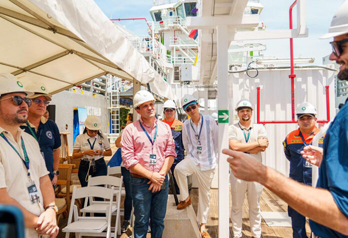 En esta ocasión, los samarios recibieron de manera honrosa al buque australiano ‘Green Pioneer’, perteneciente a la empresa Fortescue, reconocido por su innovador sistema de operación que permite reducir en más del 78% sus emisiones de dióxido de Carbono, CO₂.
