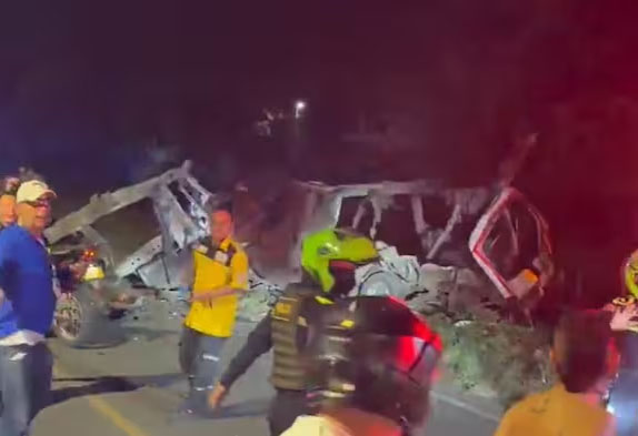 Según las primeras informaciones, el vehículo utilizado para este atentado fue una buseta de transporte escolar, con tres cilindros.