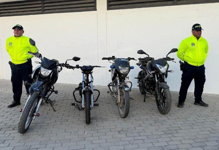 En desarrollo de las estrategias institucionales orientadas a contrarrestar el hurto de automotores en la capital del Magdalena, la Policía Nacional, a través de la Seccional de Investigación Criminal -Sijín-, reportó la recuperación de cuatro motocicletas en distintos sectores de la ciudad, como resultado de operativos de control e inspección realizados en establecimientos comerciales.